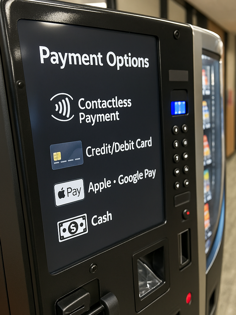Our machines support all major cashless payment systems, including Apple Pay, Google Pay, and tap-to-pay credit cards.